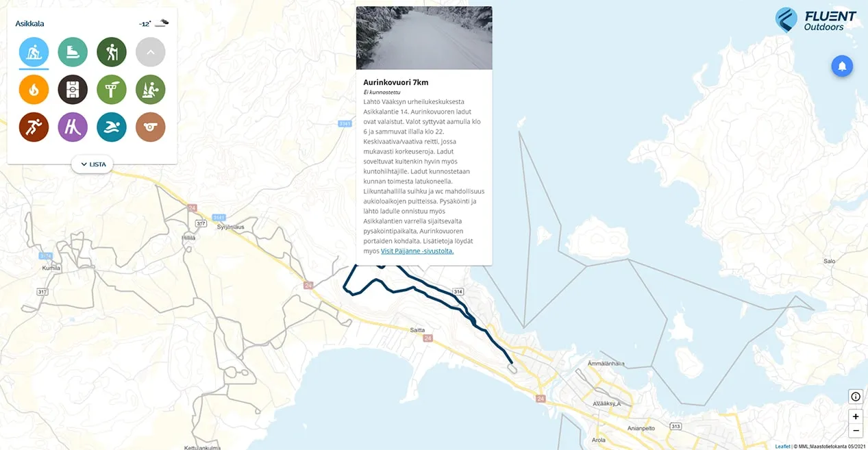 Fluent Outdoors tarjoaa kunnille ja kaupungeille yhden selkeän paikan, jossa kertoa alueen liikunta-, retkeily- ja matkailupalveluista.
